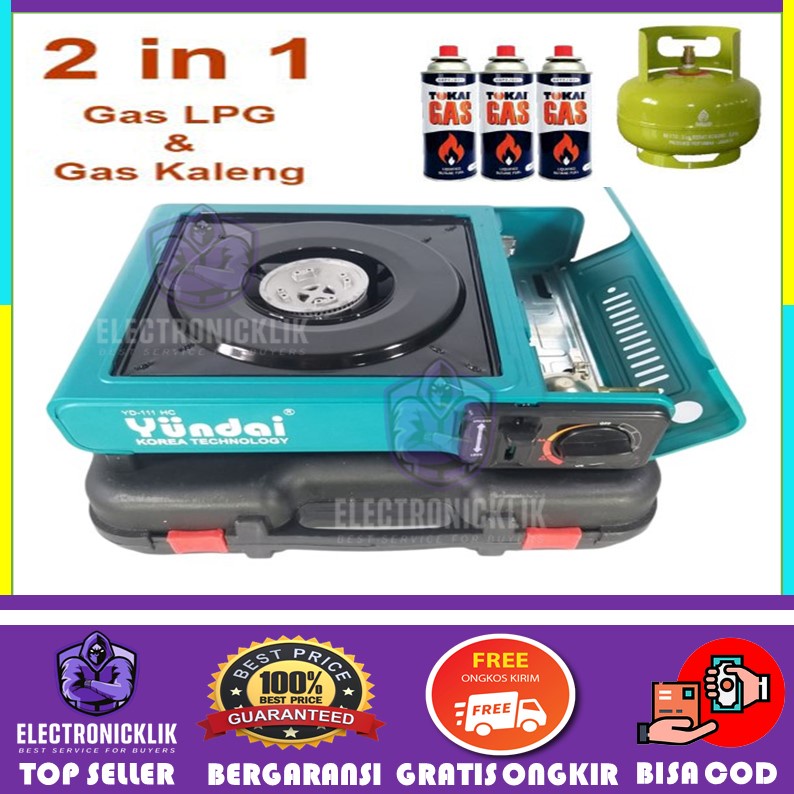KOMPOR GAS PORTABLE 2in1 Satu Tungku 2 FUNGSI GAS MINI BISA LPG BARBEQUE CAMPING TAHAN LAMA