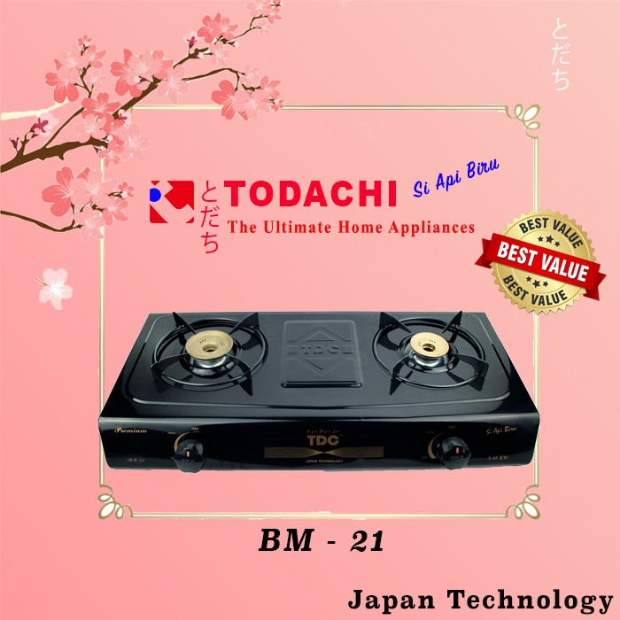 Spesifikasi Todachi Kompor Masak Gas 2 tungku Warna Hitam Burner Kuningan BM 21 Gas Elpiji(LPG)/Gas Bio(Alam)