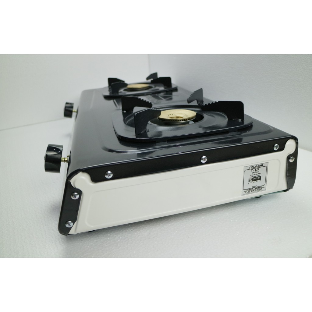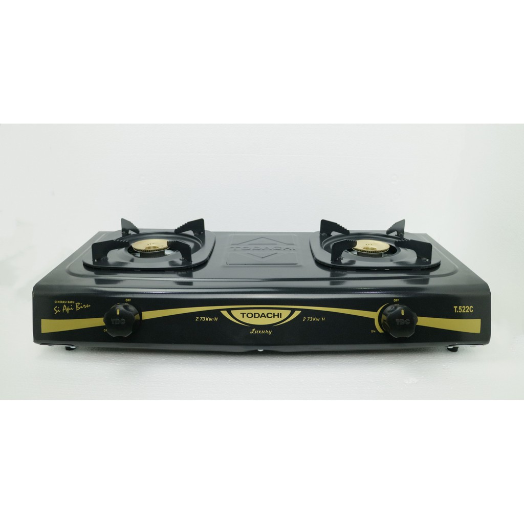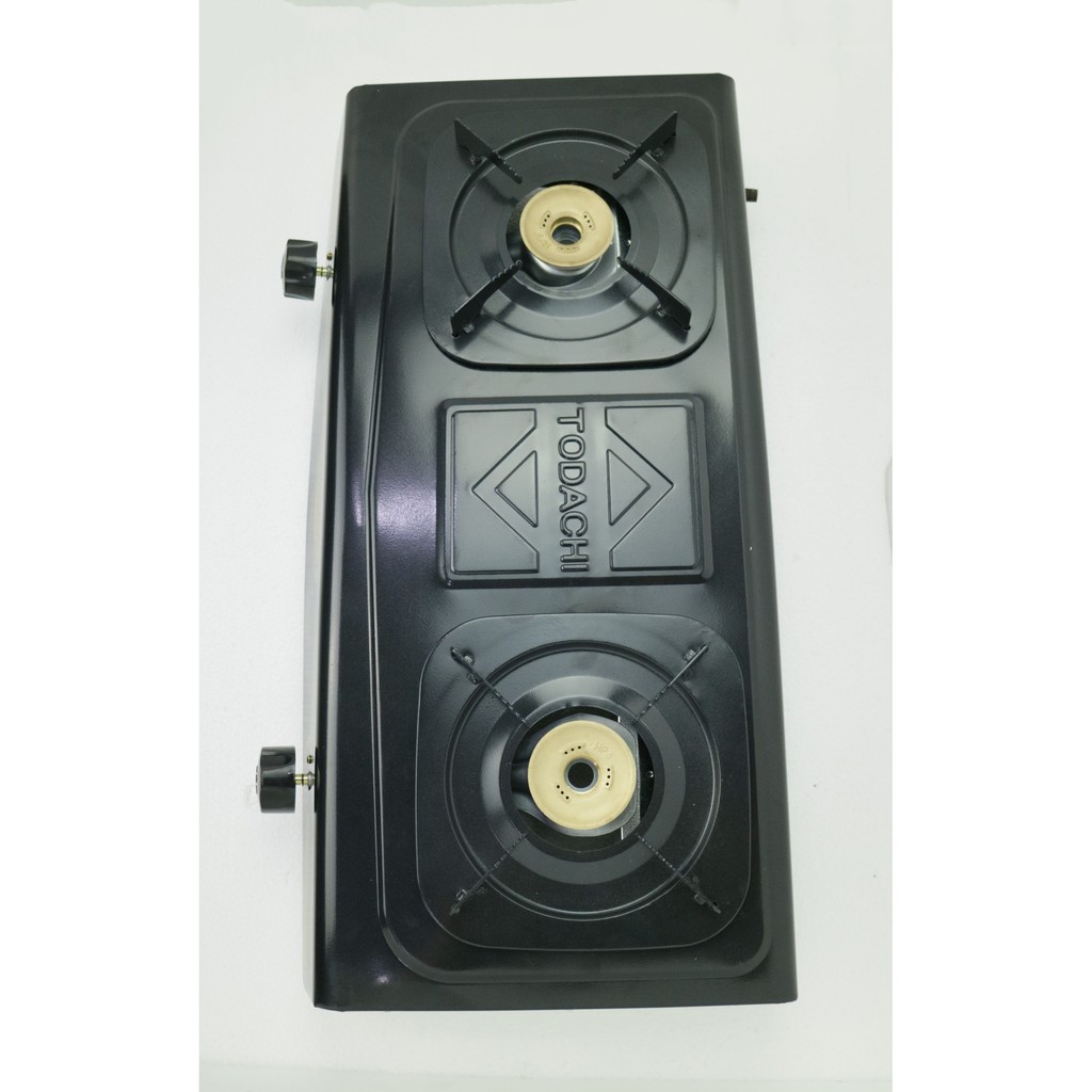 Todachi T 522C Kompor 2 Tungku Warna Hitam dengan Burner Kuningan GAS Alam/ Gas LPG