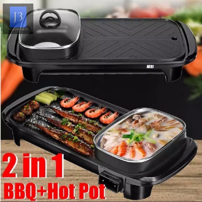 Keuntungan membeli Kompor Panggangan Bbq Dan Hotpot Elektrik 2 In 1 Grill Bbq Hotpot Elektrik Anti lengket Panggangan listrik serbaguna Bakar Bakso Sate Sosis Rebus Goreng Bakar Panci Listrik Barbeque Steamboat Teppanyaki Panggangan di Toko ini