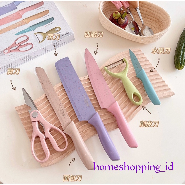 Beberapa Alasan Kenapa Harus Beli Pisau Tajam 6IN1 Pisau Set EVCRIERH Stainless Dilapis Anti Lengket Peralatan Masak Rainbow Saat Ini Juga