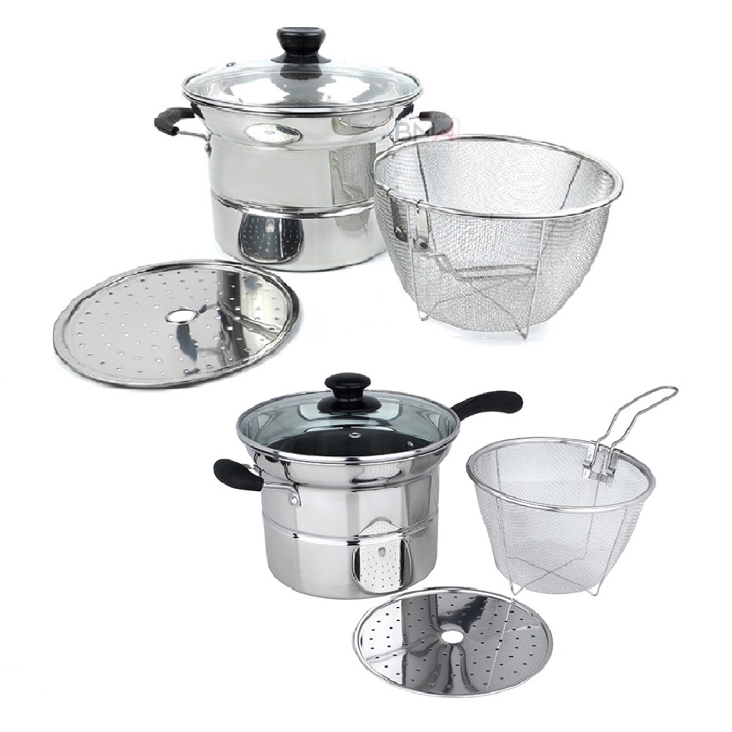 Panci 3 in 1 Kukus, Rebus & Goreng / Deep Fryer Alat Masak Serbaguna / Panci Kentang & Aneka Masakan Crispy / Multi Pot 22cm / Steamer & Fryer 2in1