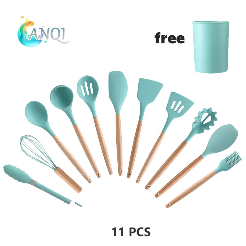 ANQI SHOP Sutil silikon Spatula Silicone sodet Alat Masak set 12pcs / VS