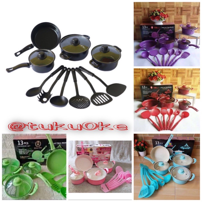 COOKWARE 13PCS ALAT MASAK 13 PIECES PAKET WAJAN SPATULA KOMPLIT WARNA