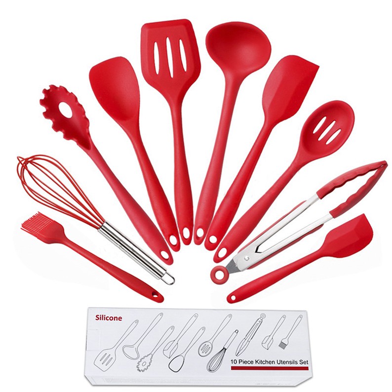 aiGooTan Medan - SUTIL SET ISI 10 PCS - Set Alat Masak Silicone Food Grade Tahan Panas